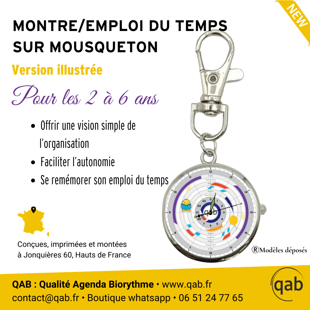 Qab-Montre – Emploi du temps – quotidien- par activité – 24h – 2/6 ans – mousqueton métal
