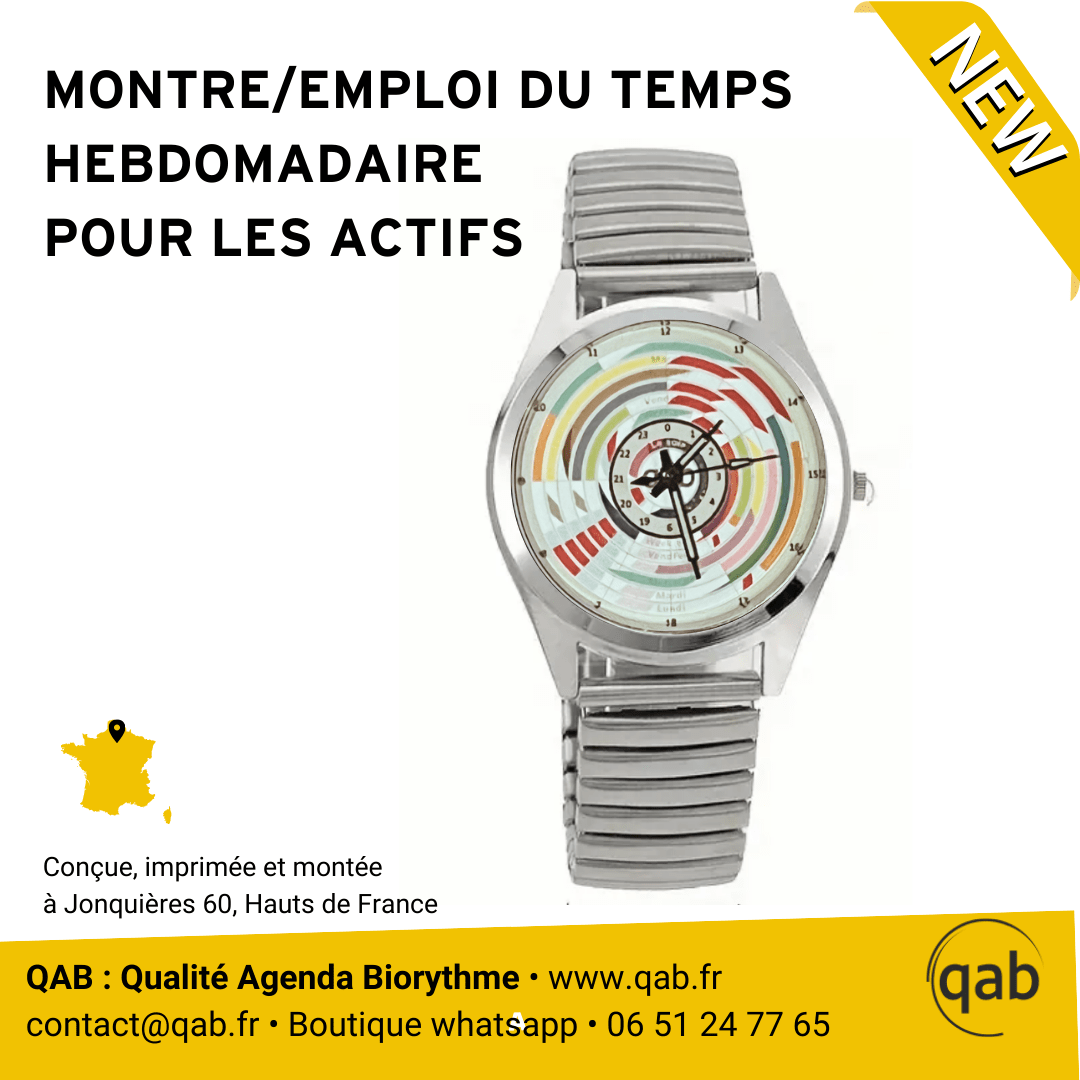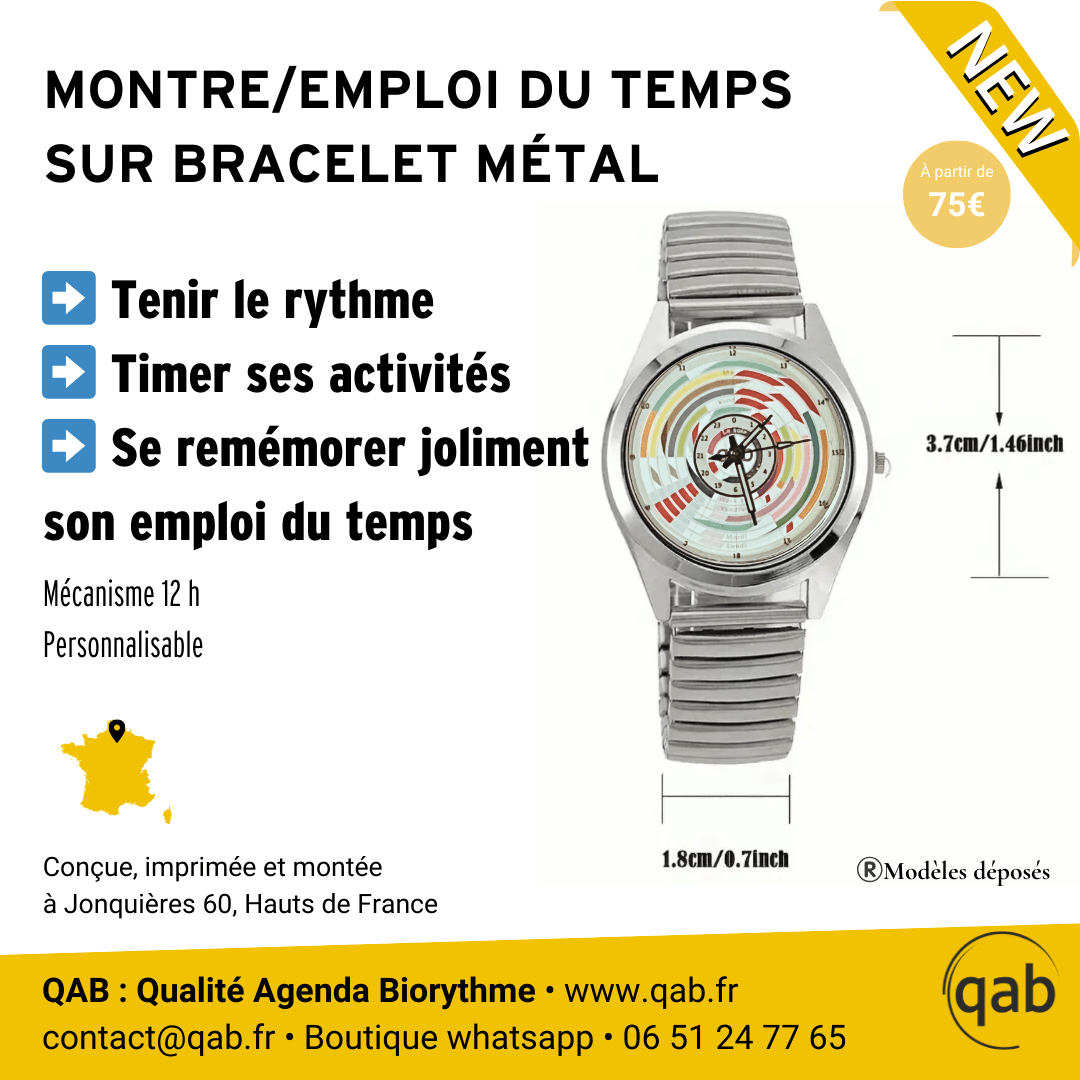 Qab-Montre – Emploi du temps – hebdomadaire- 24h – Actif – bracelet métal
